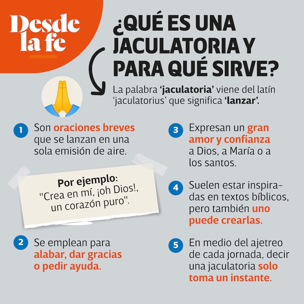 Las jaculatorias son pequeñas joyas de la espiritualidad católica que de ninguna manera buscan reemplazar las grandes oraciones, sino recordarle a los fieles que toda la vida puede convertirse en una oración.