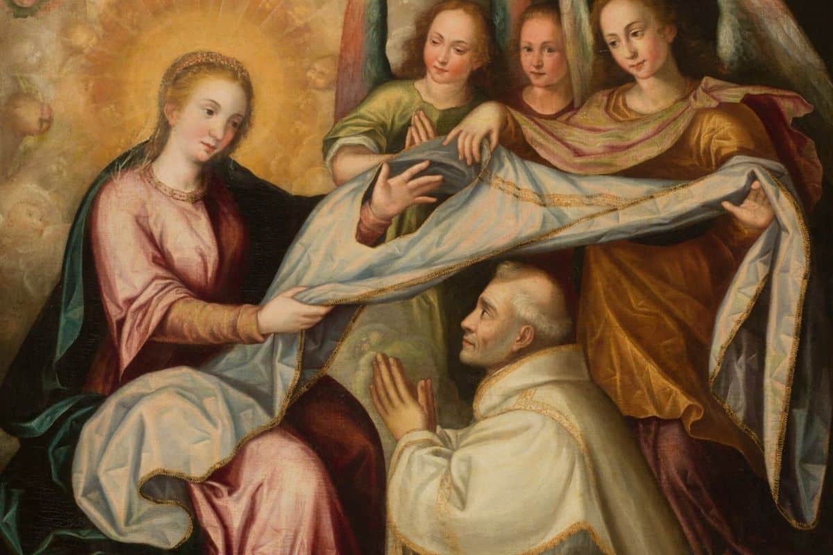 Dicho esto, la Virgen misma lo revistió y le indicó que debía usarla en las fiestas dedicadas en su honor.